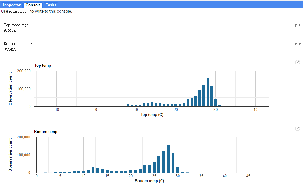 这些数据集是用我之前写的pyaqua工具下载和处理的,你可以在这里阅读关于aqualink和pyaqua工具。这些数据代表海面温度以及深度温度。这些都是为已部署的浮标而生成的,并被导出CSV文件,然后导入谷歌地球引擎。这些数据集有时间戳和所述变量的值,可以进一步用来评估一段时间的状况。