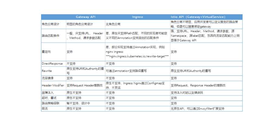 - Ingress存在已久,并且是几乎所有的Ingress Controller的默认实现,Kubernetes的用户早已习惯Ingress,尽管Ingress在易用性和功能丰富度上面存在很大的差距。