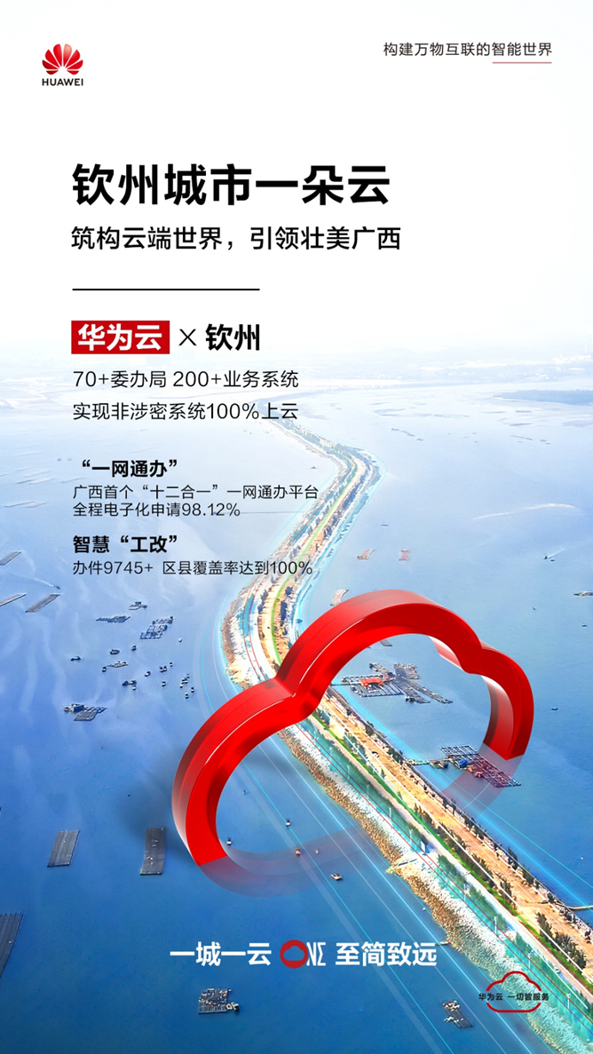 为把握数字化发展机遇,早在2018年钦州便与华为云签订了《战略合作协议》。钦州市充分发挥区位优势和中国—东盟信息港平台优势,以中国—东盟(钦州)华为云计算及大数据中心为载体,打造“钦州城市一朵云”,初步形成了“一云两基地两中心”和“三大产业生态圈”的发展格局,这其中“一云”指的就是华为云。目前华为钦州政务云承接了钦州市70多个单位200多个业务系统的政务云服务工作,实现非涉密系统100%上云,经过将近4年的运营,做到了零风险零故障,为数字政府治理与政务服务变革提供了坚实的数字底座。钦州大力推动云在“数字钦州”“数字家庭”“两化”深度融合中的应用,“网”罗万象,纵享“云”端,如今的钦州,变得更加生态宜居,人民正享受着数字化发展带来的幸福美好。