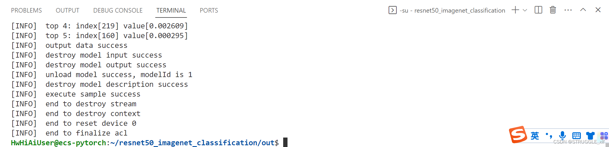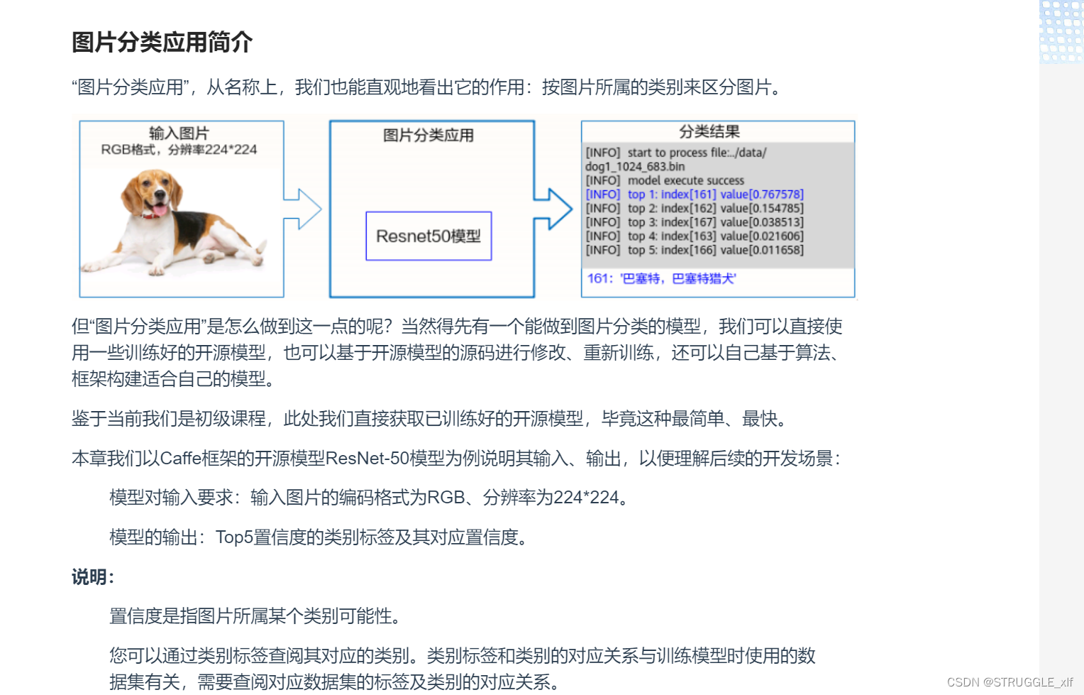 说明: 类别标签和类别的对应关系与训练模型时使用的数据集有关,本样例使用的模型是基于imagenet数据集进行训练的,您可以在互联网上查阅imagenet数据集的标签及类别的对应关系,例如,可单击Link查看。 当前屏显信息中的类别标识与类别的对应关系如下: “161”: [“basset”, “basset hound”]、 “267”: [“standard poodle”]。