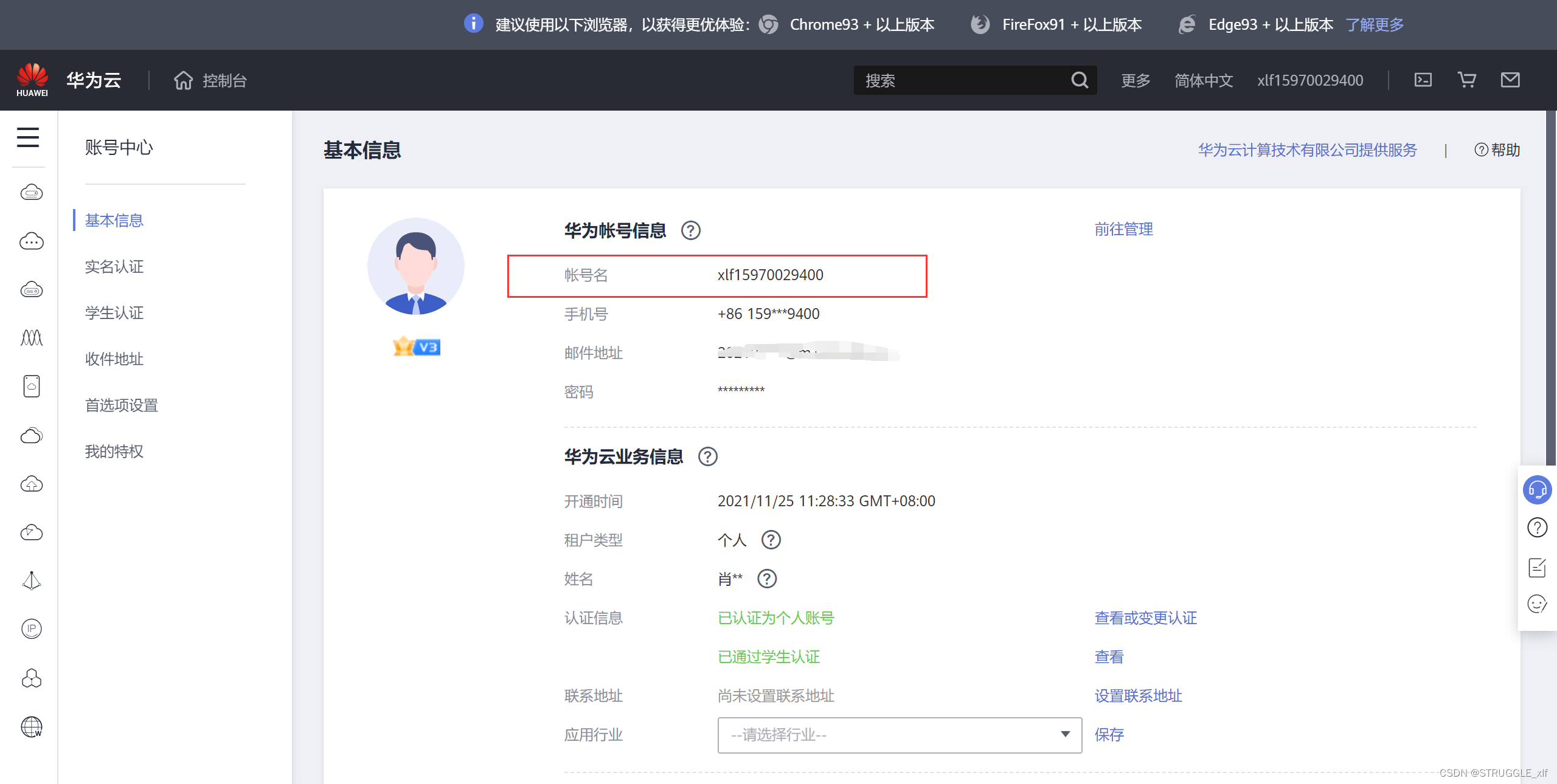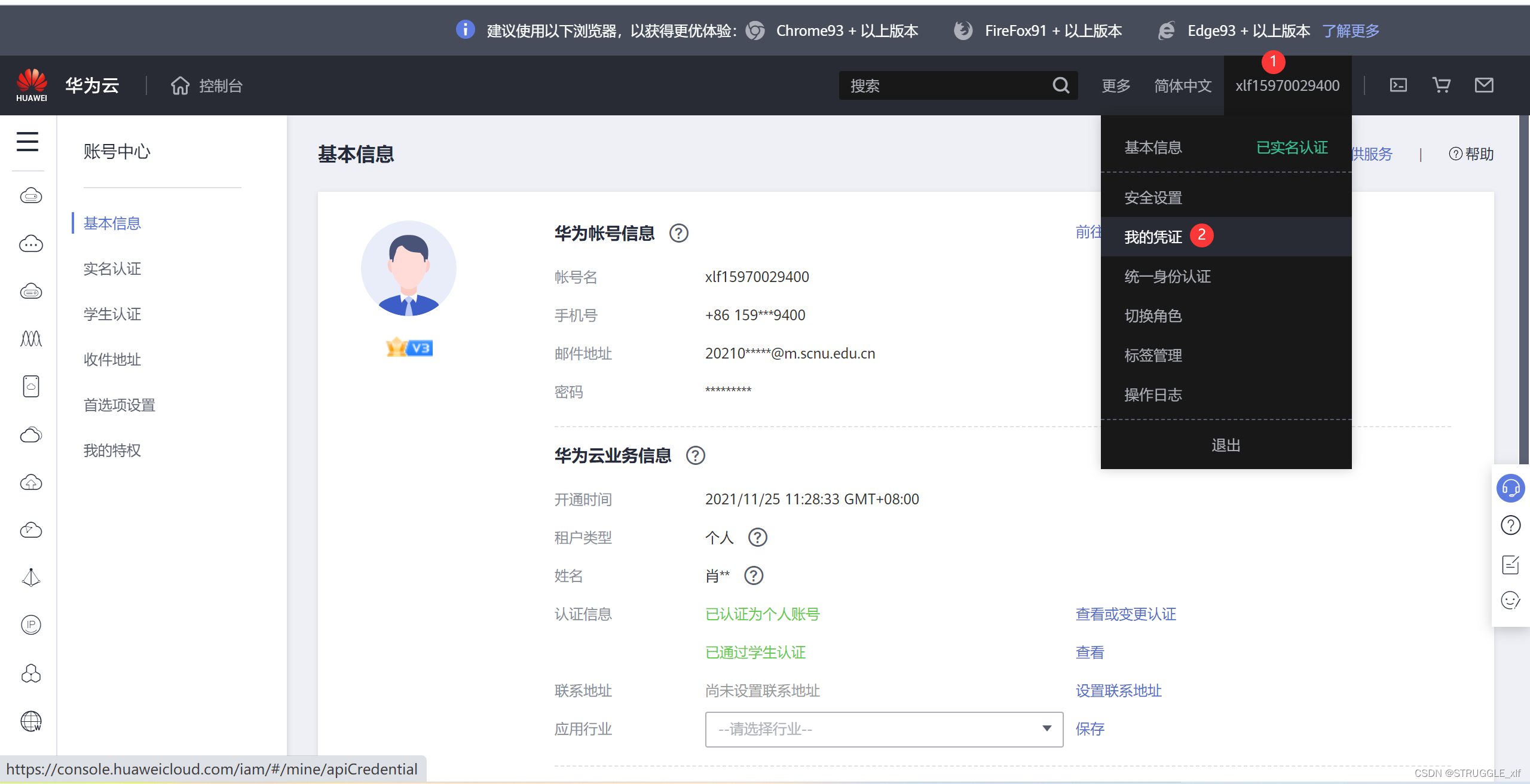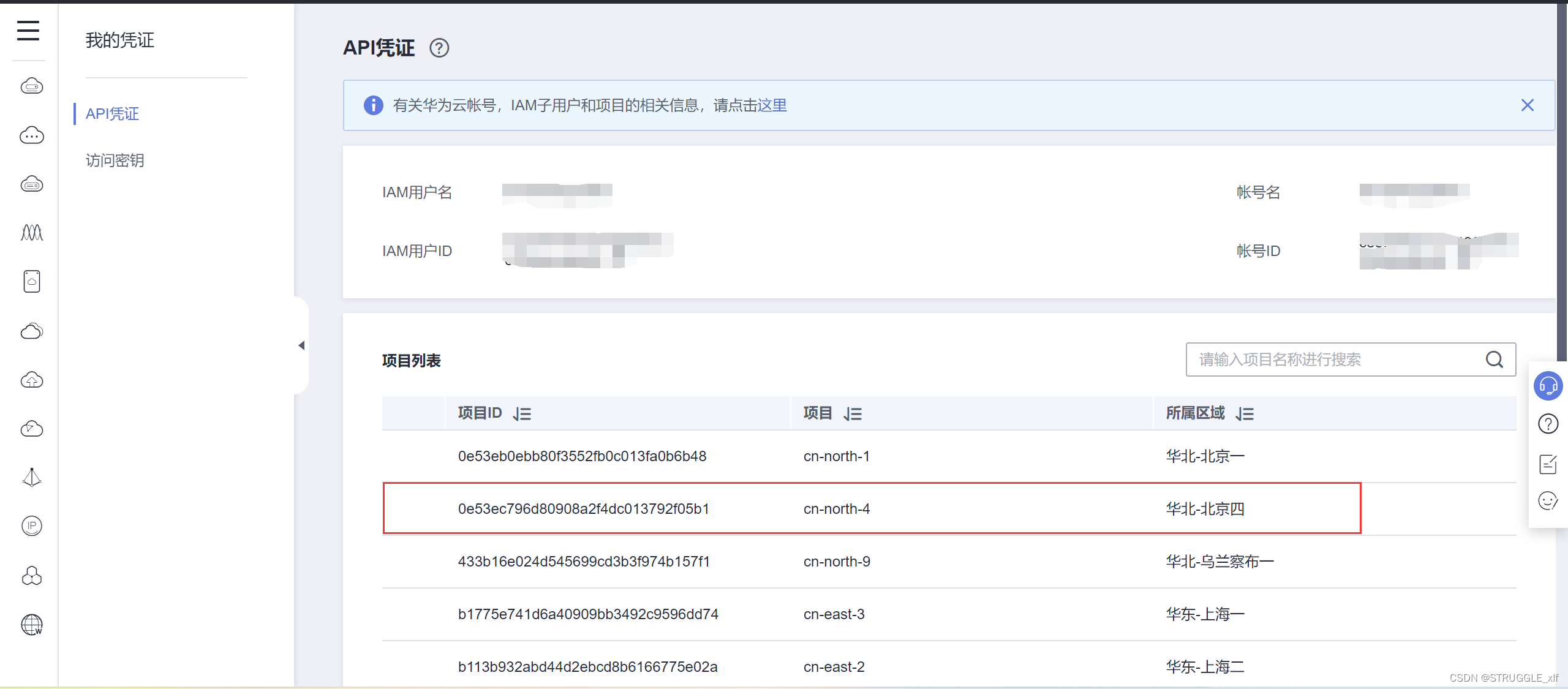 1.获取华为云帐号名以及项目 ID ,以便课程接口人给您推送云环境镜像。