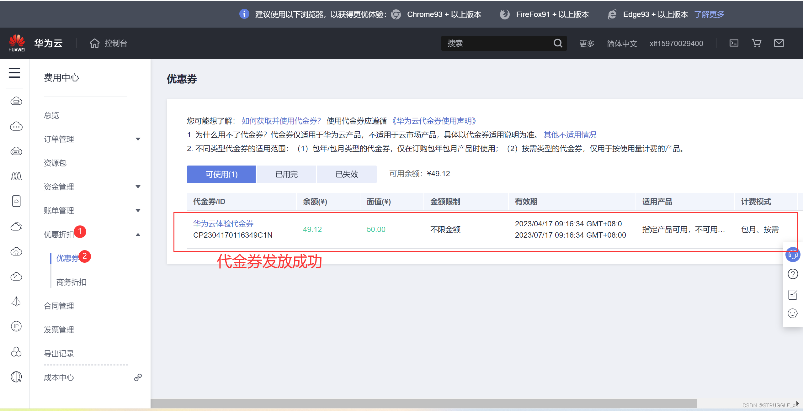 2.使用代金券购买 ECS 云环境,以便获取到编译、运行应用的环境。