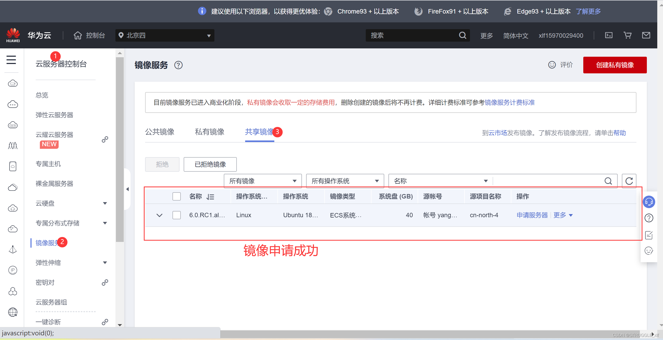 有了华为云账号和项目ID之后,就可以填以下链接申请镜像: