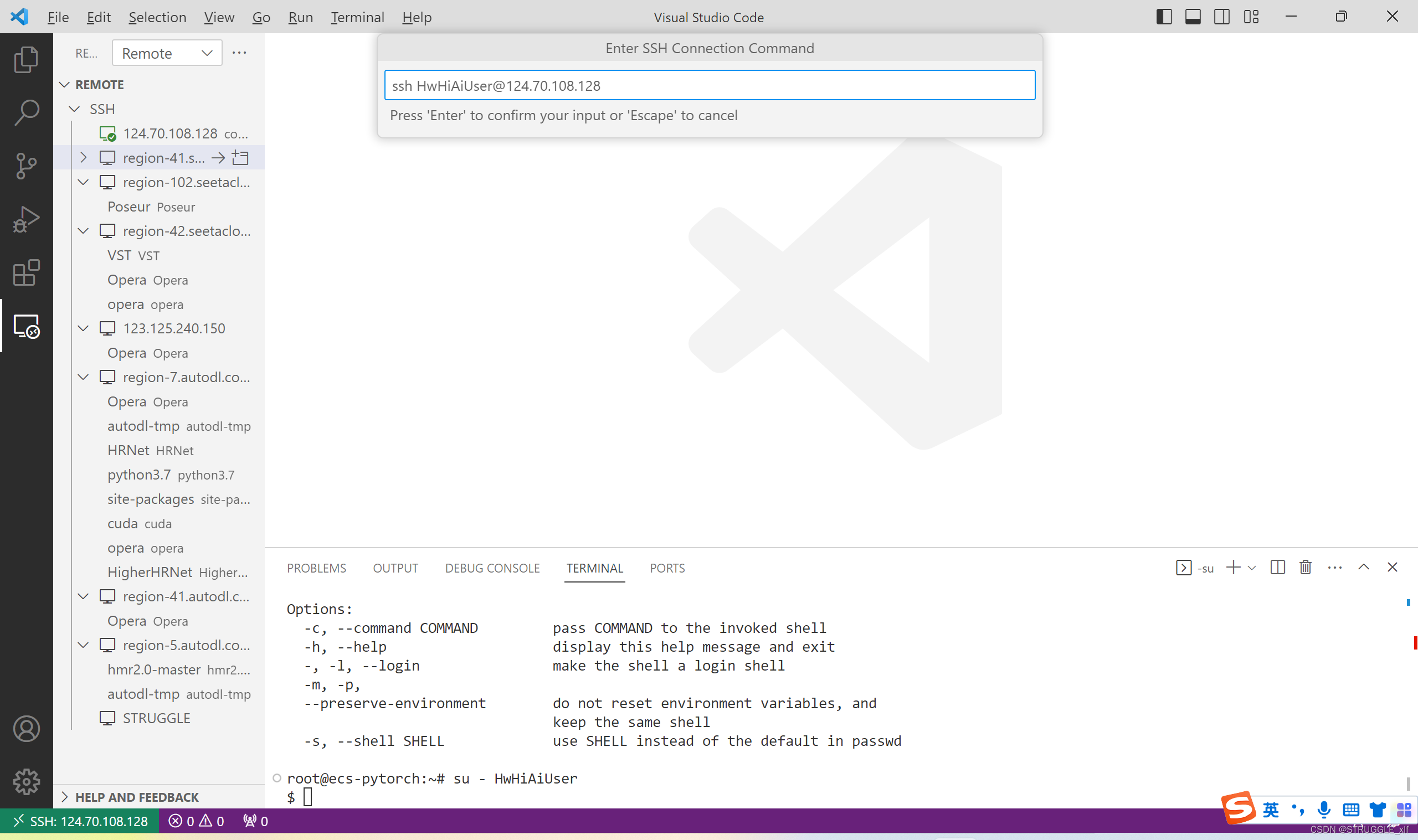 一定要出现HwHiUser@ecs-pytorch才可以。
