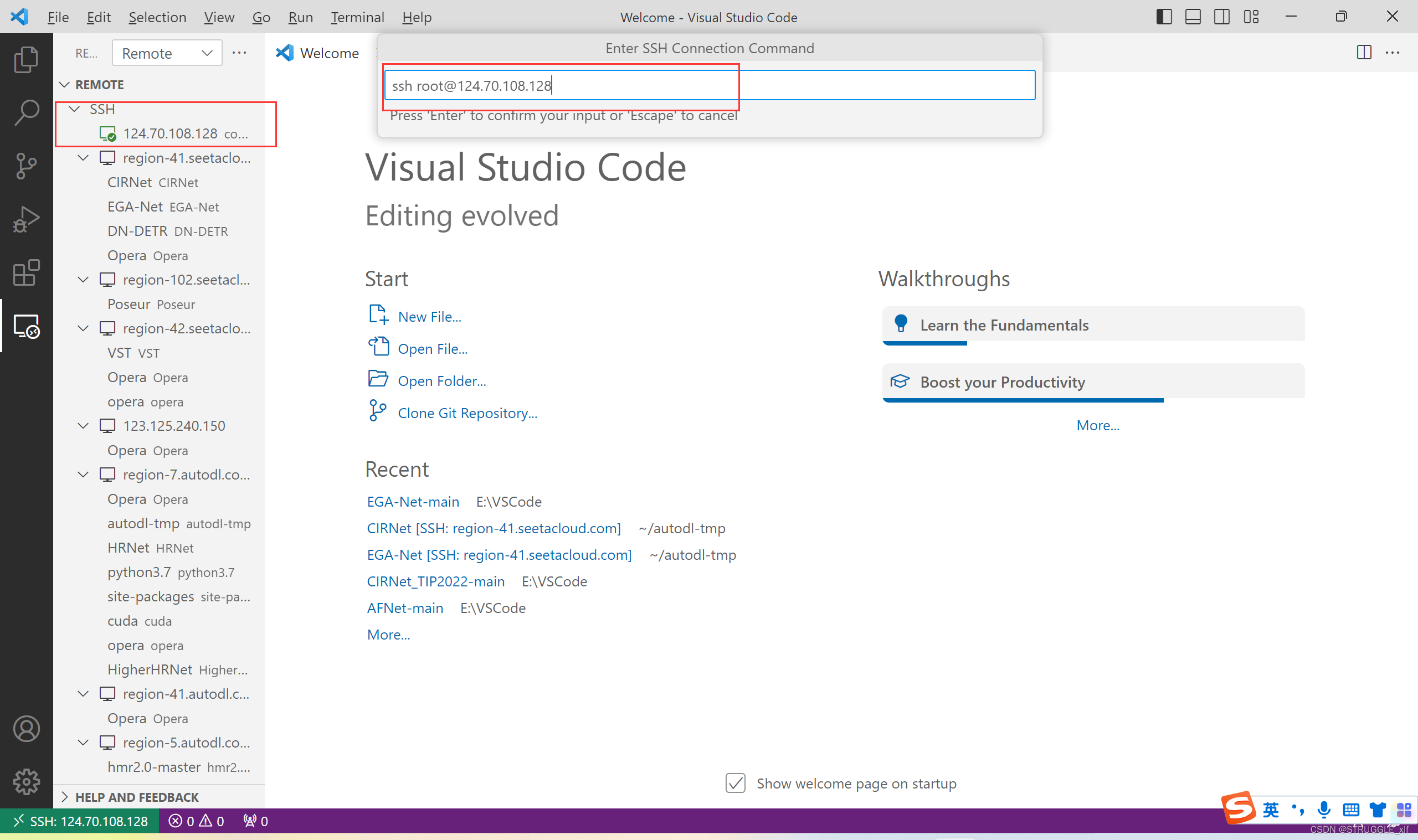 注意:在连接到VSCode之前,要注意先把弹性云服务器的远程登录打开