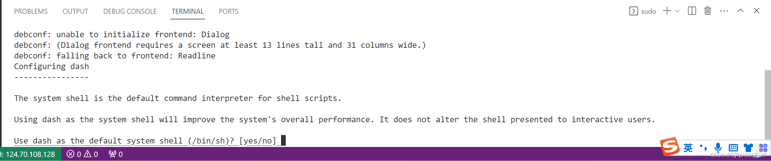 要注意这里的但引号是英文输入法下的Tab键上面的引号,输入其他的可能会报错,得到/bin/sh - > bash 说明正确。