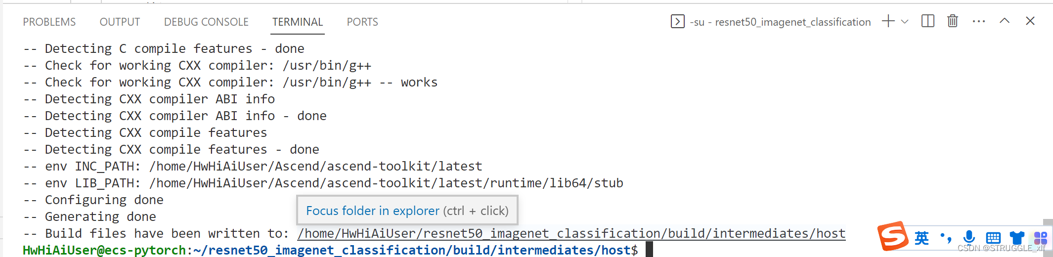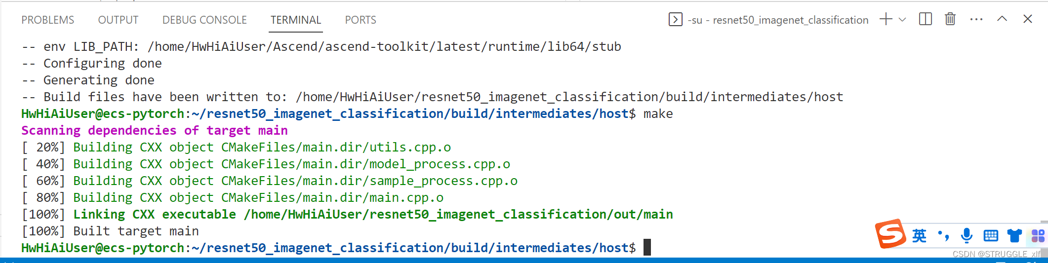 在model文件夹下可以看到生成了一个resnet50.om文件(在输出路径不用注明resnet50.om,会自动生成.om文件)