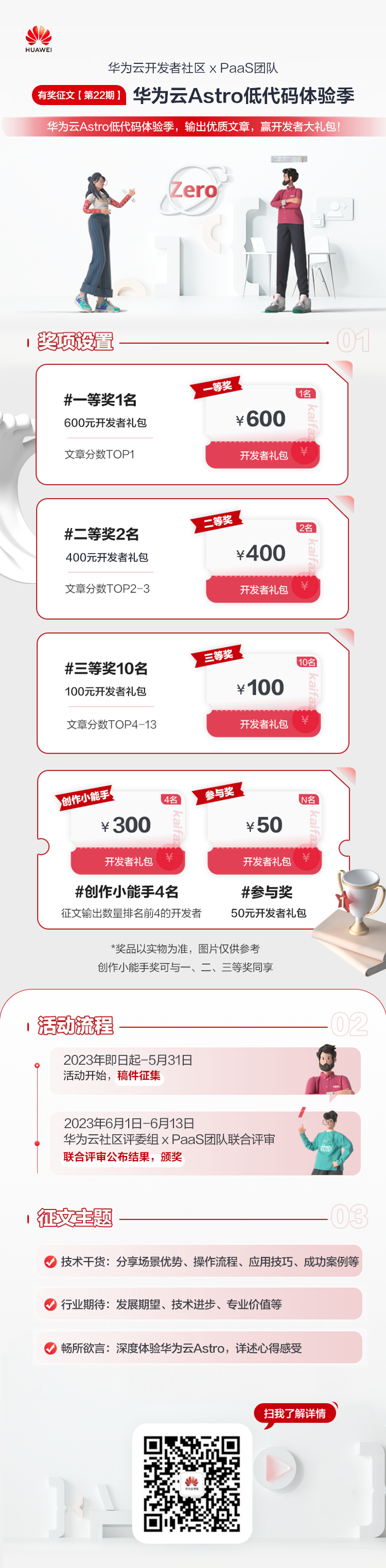 【有奖征文 第22期】华为云Astro低代码体验季,输出优质文章,赢开发者大礼包!