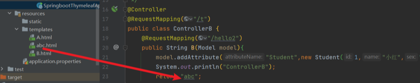 model.addAttribute("Student",new Student(1,"小红","女"));