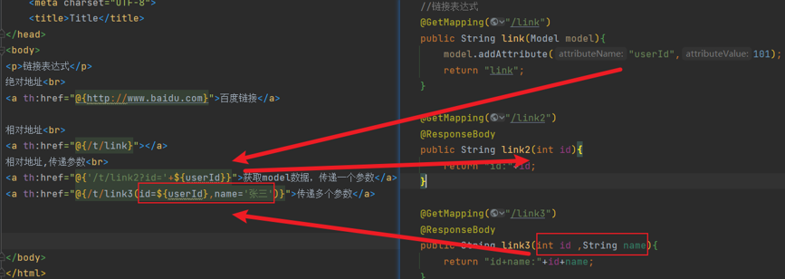 <a th:href="@{/t/link3(id=${userId},name='张三')}">传递多个参数</a>