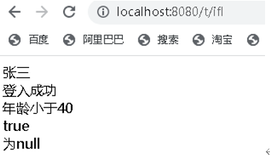 三元运算符:<p th:text="${login == true ? '登入成功' : '登入失败'}"></p>