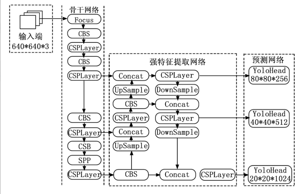 FPN自上而下,将浅层特征与上采样后的上层特征信息进行传递融合,而PAN自下而上,将下采样后的小尺寸特征图像与大尺寸特征图像进行融合,并成对组合,对不同的检测层进行两次参数融合。
