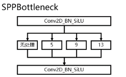 SPP结构,通过不同池化核大小的最大池化进行特征提取,提高网络的感受野。