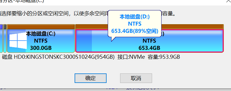 选择给C盘扩容的盘,这里选择的是D盘,点击确定