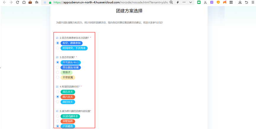 本次实践的目的是通过华为Astro轻应用为公司制定一春季个团建方案,以达到增加团队凝聚力的目的。