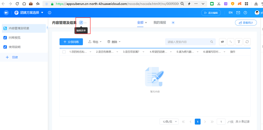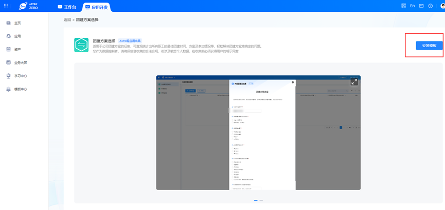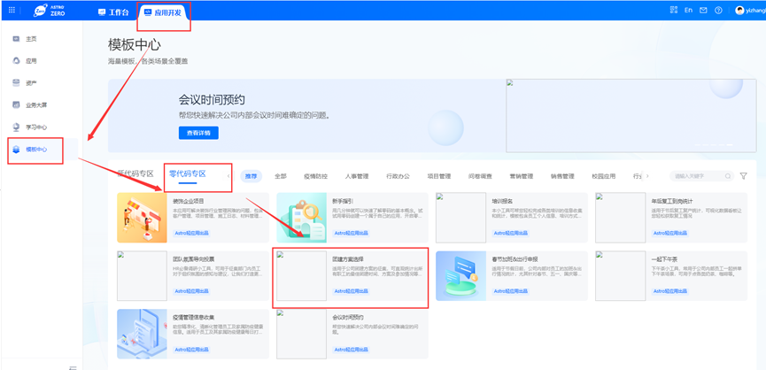 依次选择:应用开发-模板中心-零代码专区-团建方案;