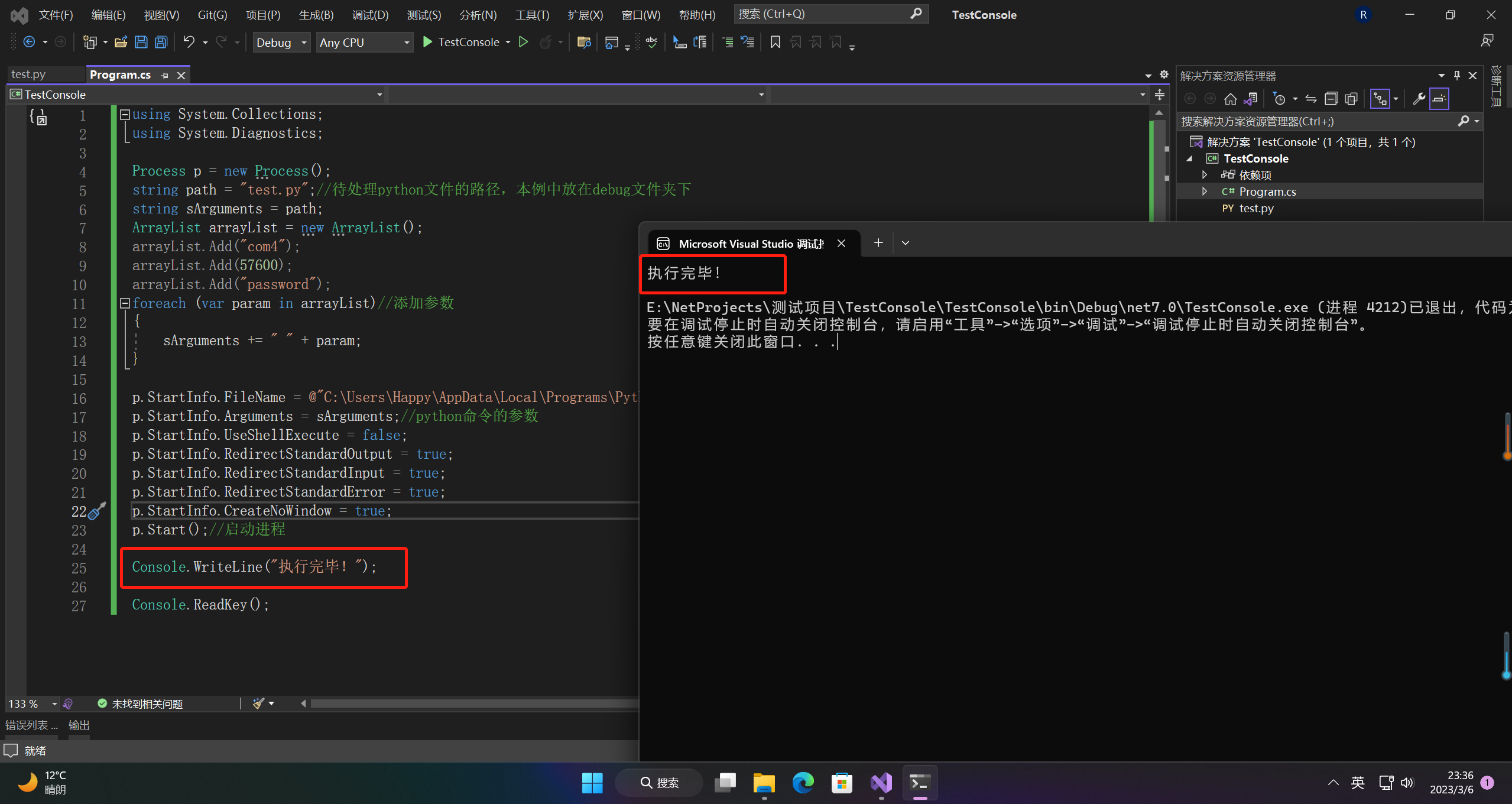 p.StartInfo.FileName = @"C:\Users\Happy\AppData\Local\Programs\Python\Python311\python.exe";//没有配环境变量的话,可以像我这样写python.exe的绝对路径。如果配了,直接写"python.exe"即可