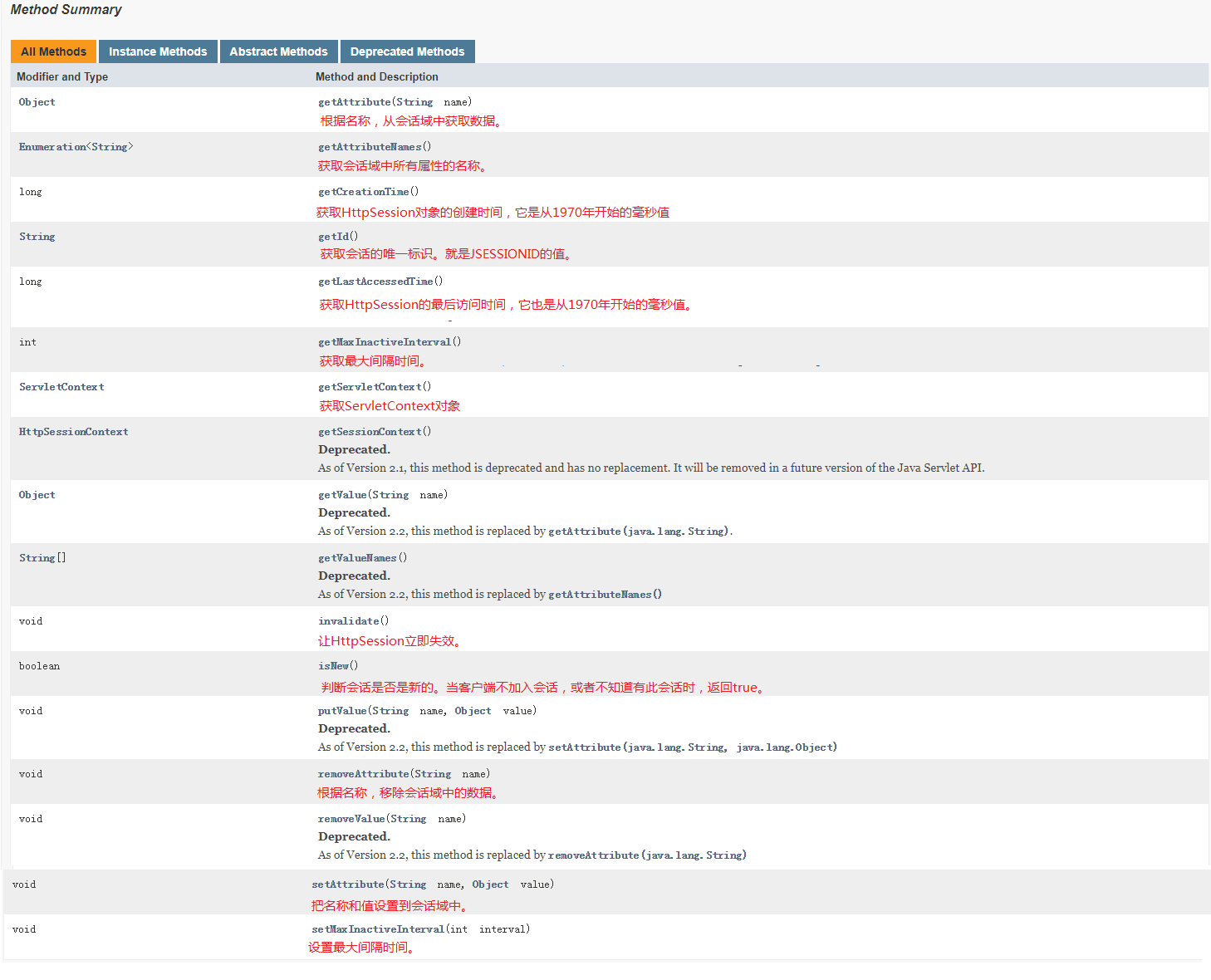 3)HttpSession的常用方法