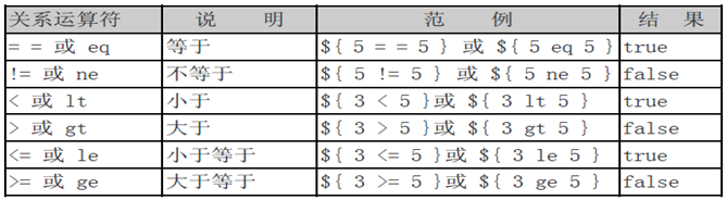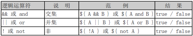 EL表达式中运算符如下图所示,它们都是一目了然的: