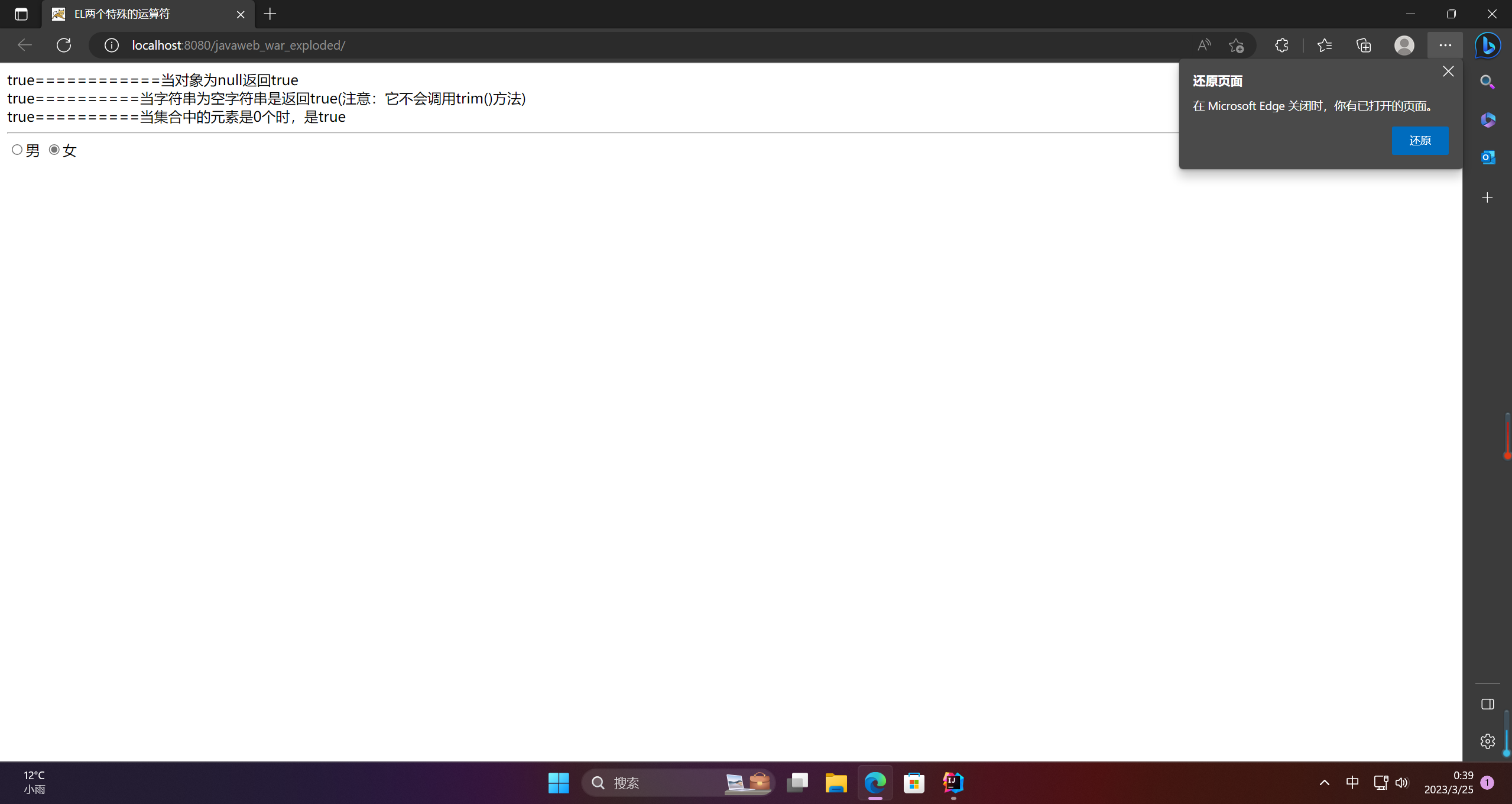 <input type="radio" name="gender" value="male" ${gender eq "male"?"checked":""} >男