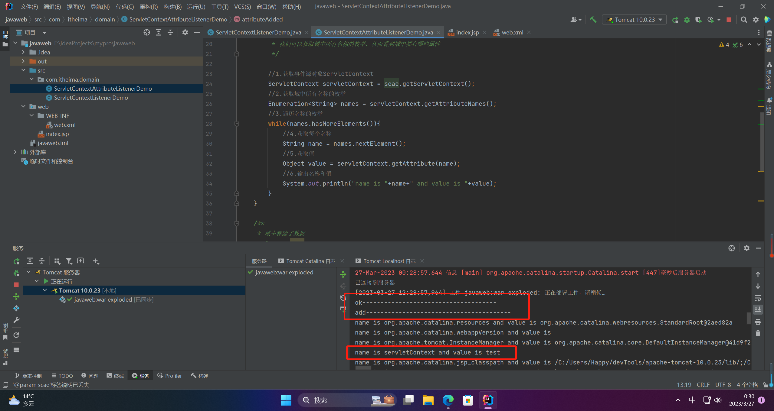 <listener-class>com.itheima.domain.ServletContextAttributeListenerDemo</listener-class>