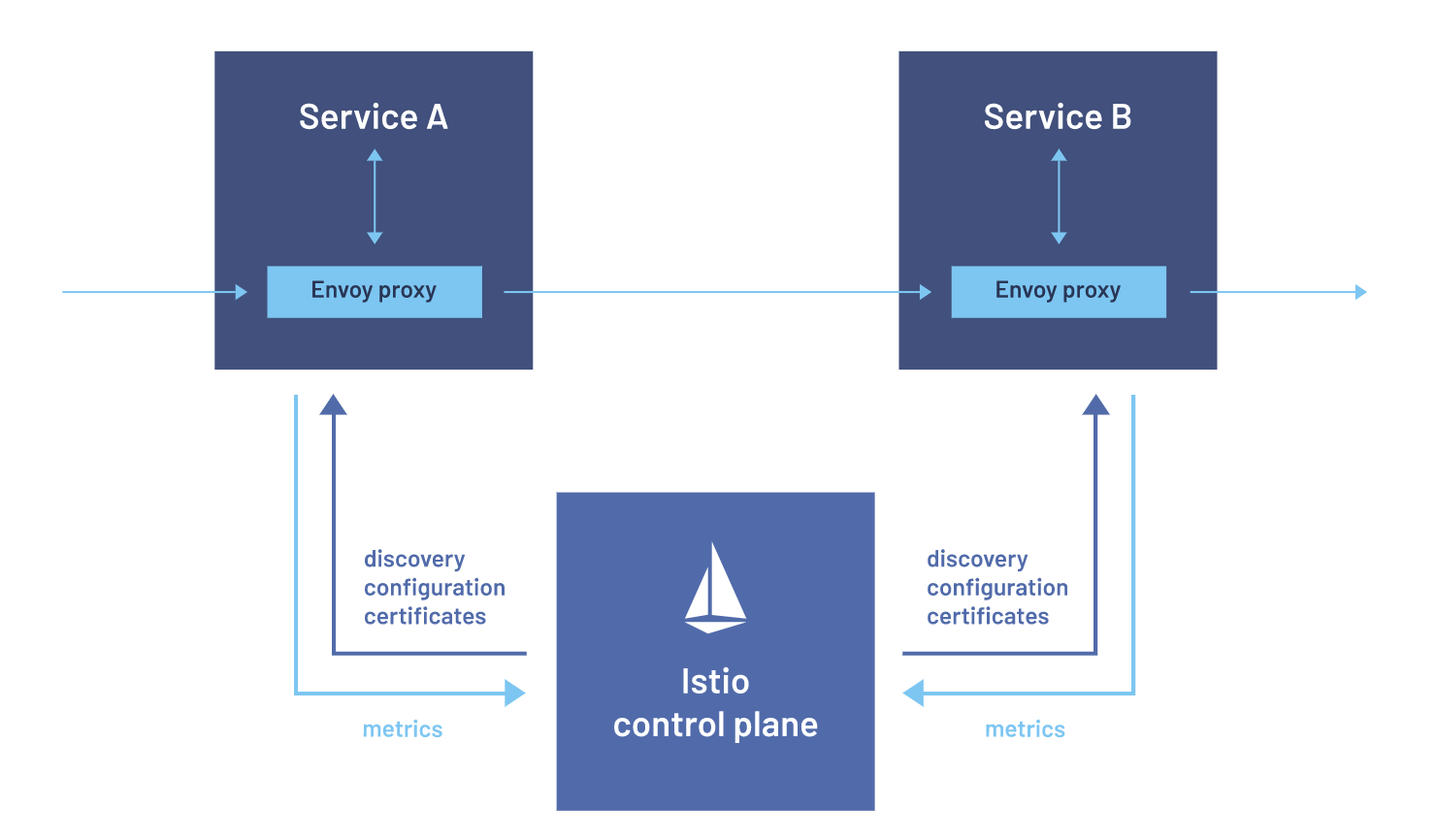 Istio项目的愿景是以尽量透明的方式,解决微服务场景下,服务间的连接、安全以及可观测性问题。主要实现手段则是通过在应用旁部署一个Proxy,在Kubernetes场景下则为应用Pod注入Sidecar,拦截应用流量至Sidecar。Sidecar根据从Istio控制面获取的用户配置对应用流量进行处理,以一种对应用代码几乎无侵入的方式实现了服务治理。