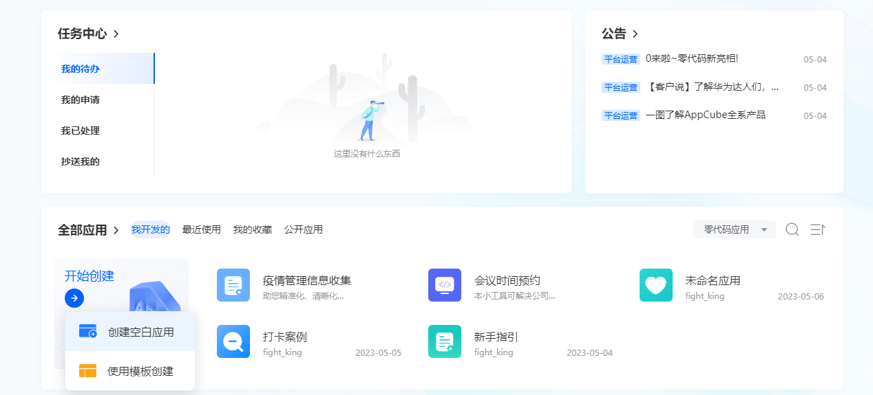华为云Astro是什么?第一次见Astro时,我不知道其是什么和它有什么用。经过查资料,发现华为云Astro是全场景低代码平台,它提供了零码、低码、流程、大屏、高低码协同等能力,开发者可以基于平台能力,构建多场景应用。下面请跟随我的步伐,以“通过零代码快速搭建打卡小程序”这一操作来开启它的体验之旅。