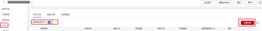 First-> 进入细粒度快照能力模块,打开集群的细粒度快照能力: