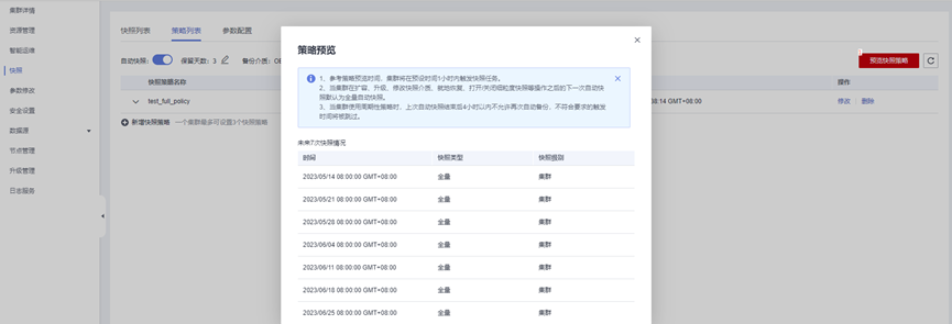 步骤c:预览快照策略,未来几次快照策略计划符合预期: