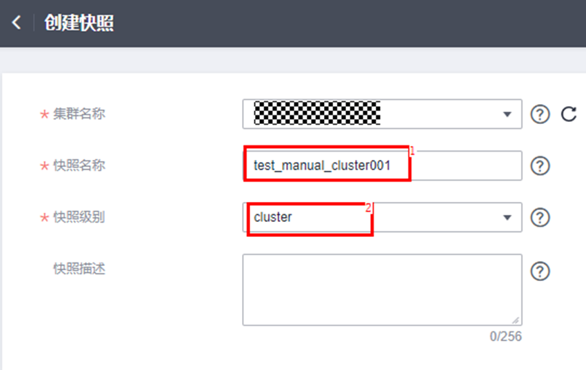 步骤a:创建快照名为test_manual_cluster001的cluster级手动快照;