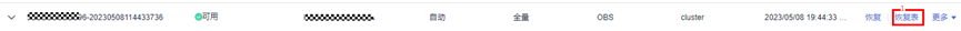 步骤e - 从集群级自动快照恢复表: 在“快照管理”列表选中该集群自动全量快照,点击“恢复表”: