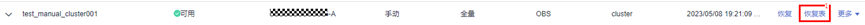 步骤c:在“快照管理”列表选中手动集群级快照“test_manual_cluster001”,点击“恢复表”: