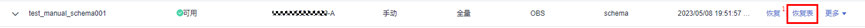 步骤c:在“快照管理”页面,选中名称为“test_manual_schema001”的schema级别快照,点击“恢复”,支持多表恢复到新schema新表: