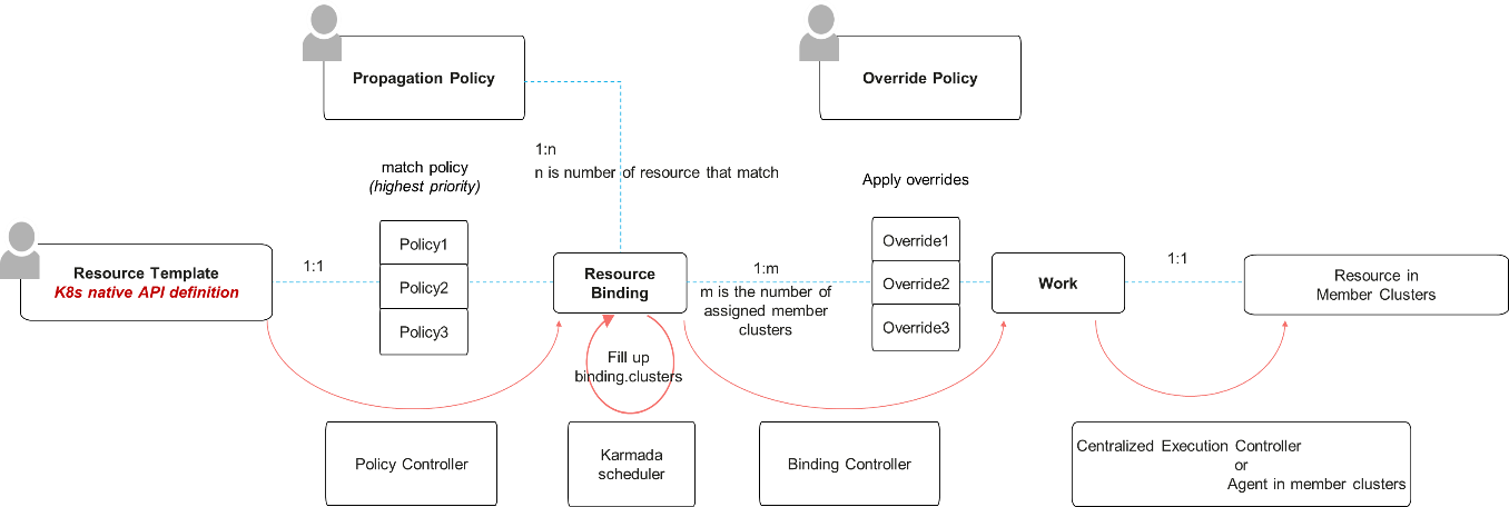 注:API调用时延仍然是衡量基于Kubernetes的多集群系统服务质量的关键指标。Karmada兼容Kubernetes原生API,用户除了使用原生API创建K8s的资源模板外,也可以使用Karmada自有API来创建多集群策略和访问跨集群的资源。