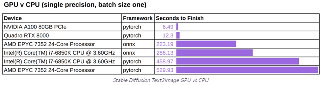 由于“AI作画”一般是GPU为主,虽然CPU也可以,但是速度相较GPU会慢很多(见下图)。所以这里我们准备一个带GPU的Docker环境。
