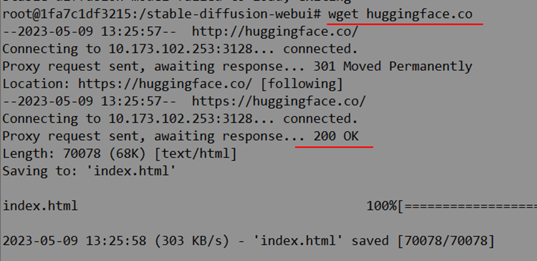 这是因为这个镜像会联网下载“模型”。而我的容器无法联网。所以这里在容器里面设置代理: