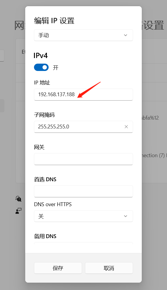 我们配置下网卡,让PC的Windows跟开发板网卡的地址在同一网段,张小白喜欢188: