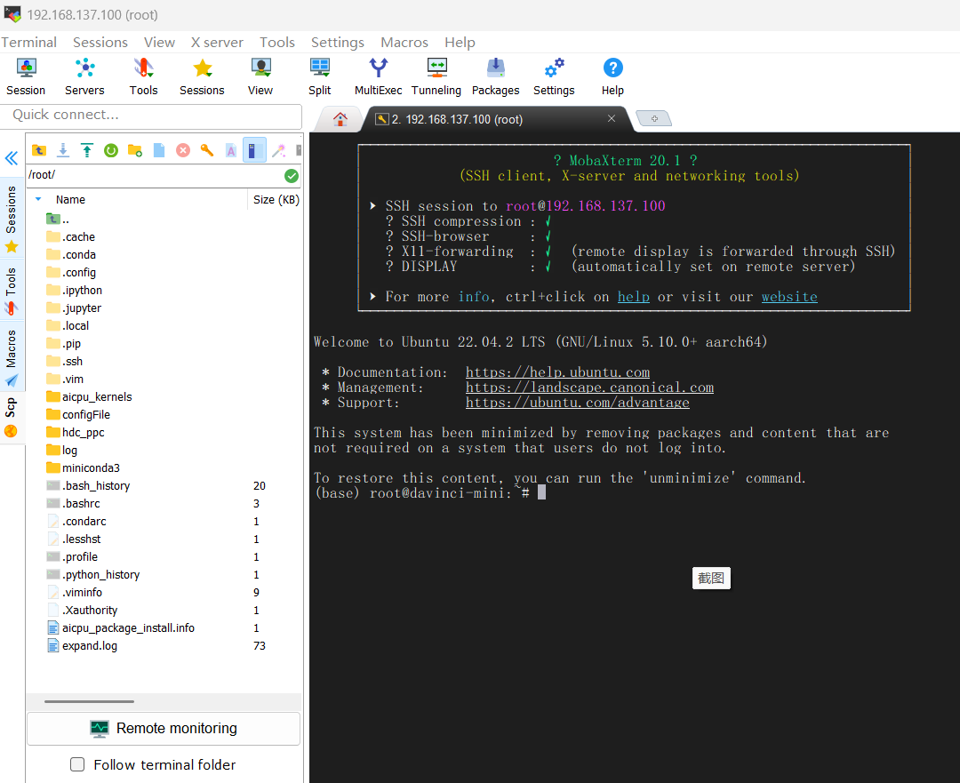 登录进去,可以发现,操作系统为ubuntu 22.04,有conda环境。
