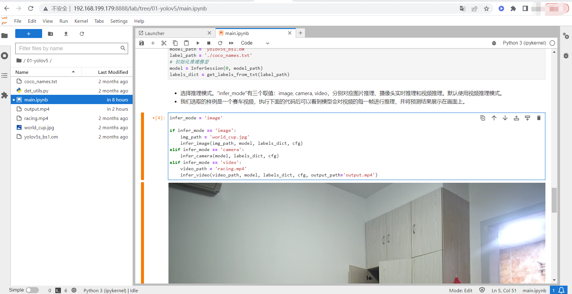 前面使用了预置的jupyterLab环境,验证了resnet,其实它还有一个YoLoV5的功能,可以对视频、照片和摄像头进行推理。。