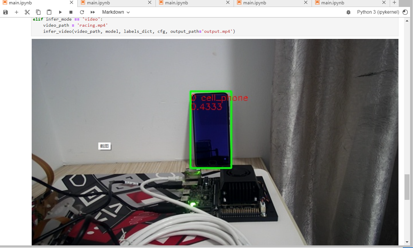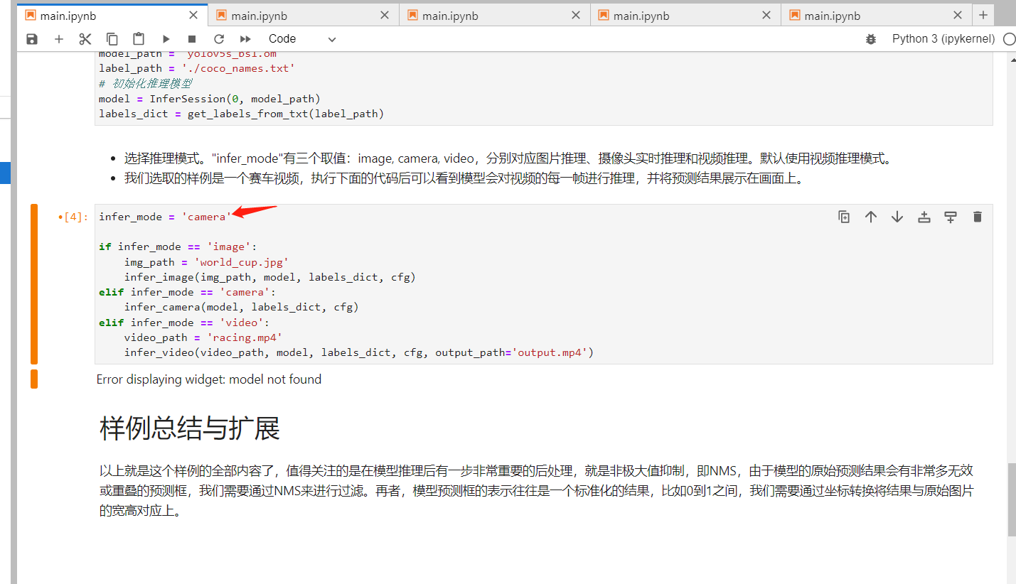 重新打开JupyterLab的样例代码,将mode改为camera: