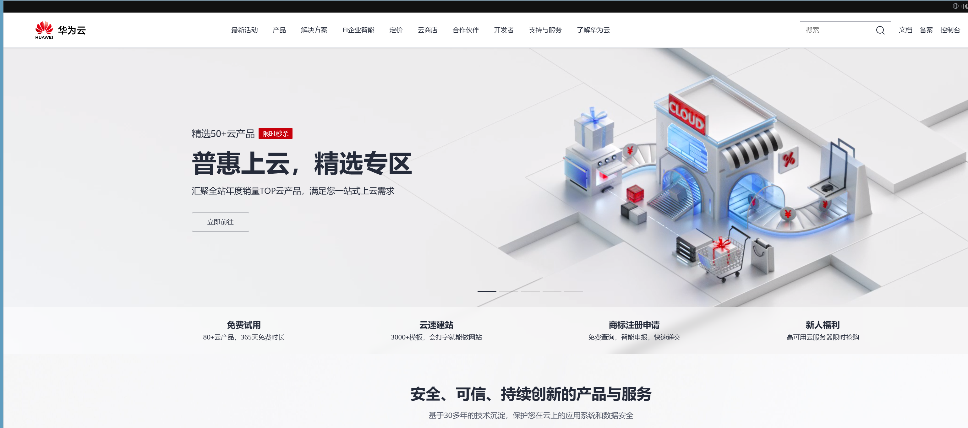 注册完成后,进入华为云官网:https://www.huaweicloud.cn/