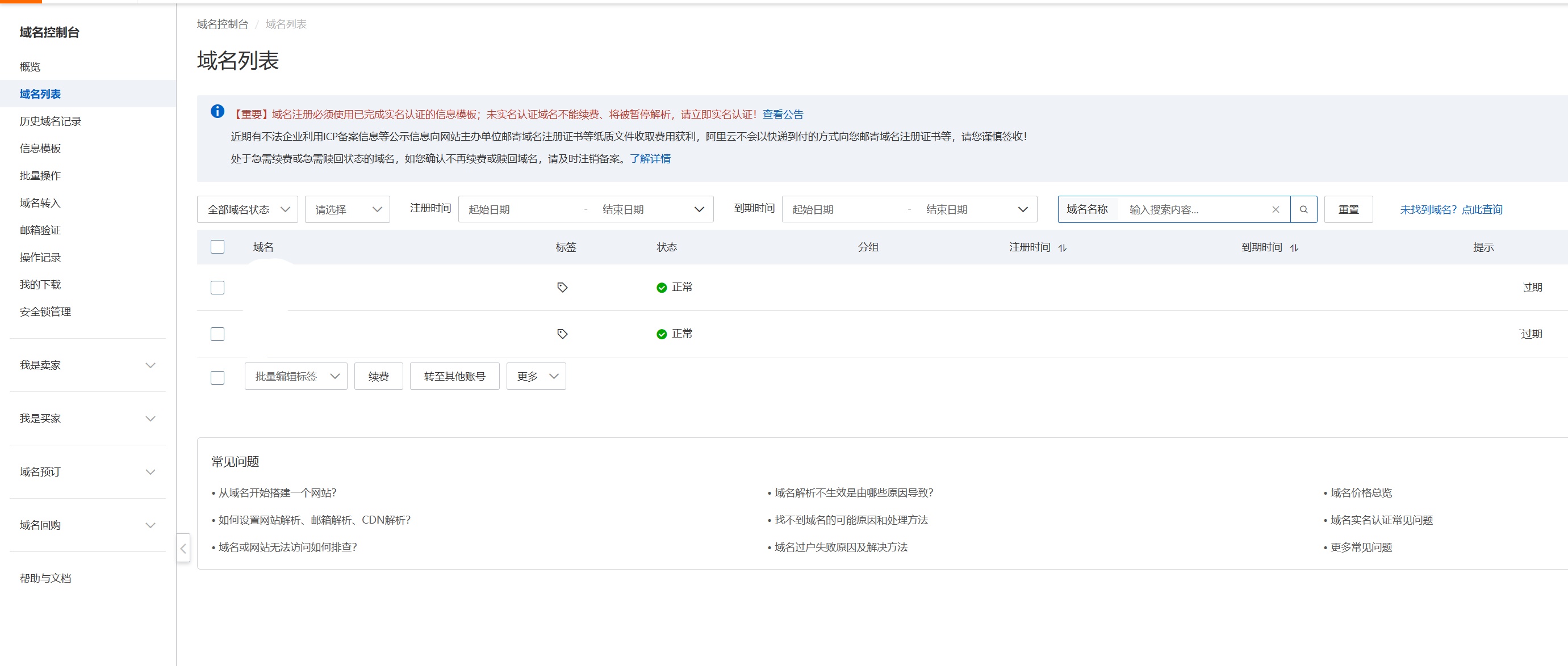 阿里的域名购买与华为类似,不过只需要支付宝进行登录即可