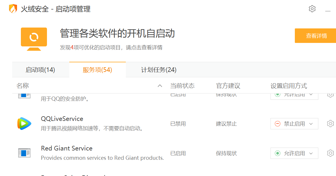 选择服务项,找到Red Giant Service将启动方式改为允许启动