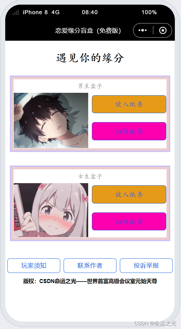 1.可以根据自己的性别选择放入纸条