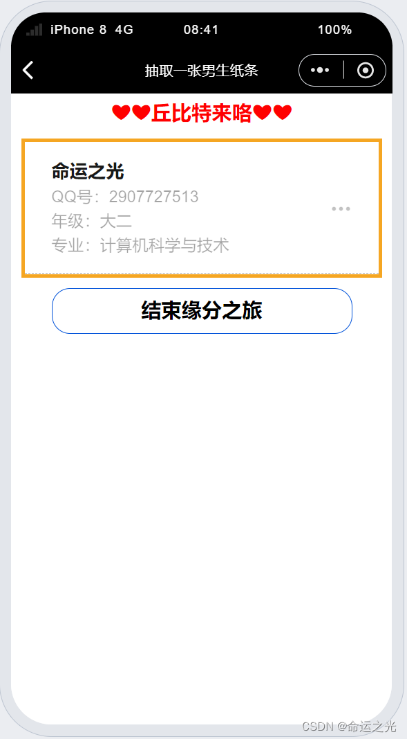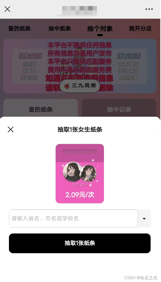 里面是一款小程序,而寻找一次爱情要付费两块钱💴,就离谱,谁能懂啊