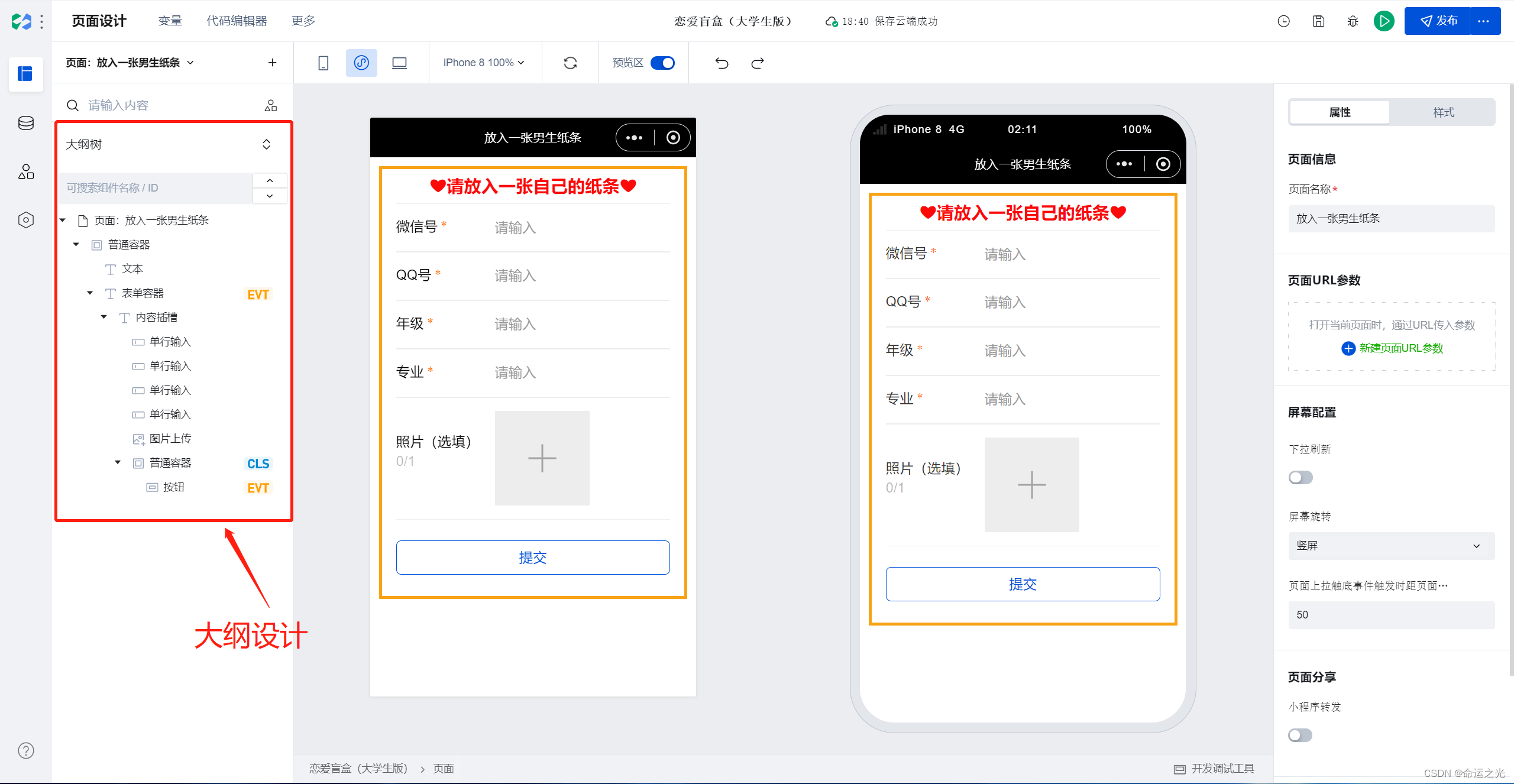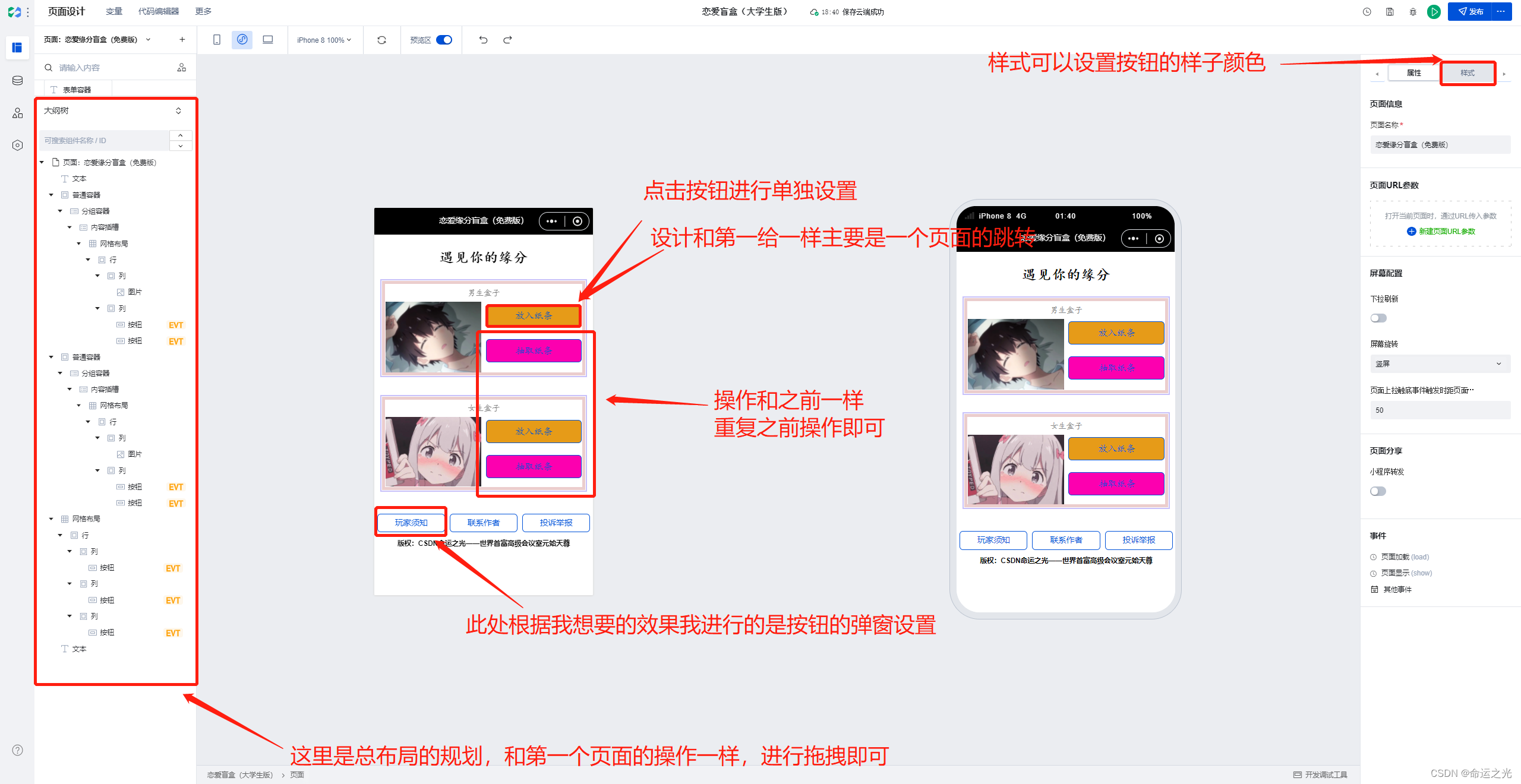 2.进行“放入一个男生纸条”的页面设计