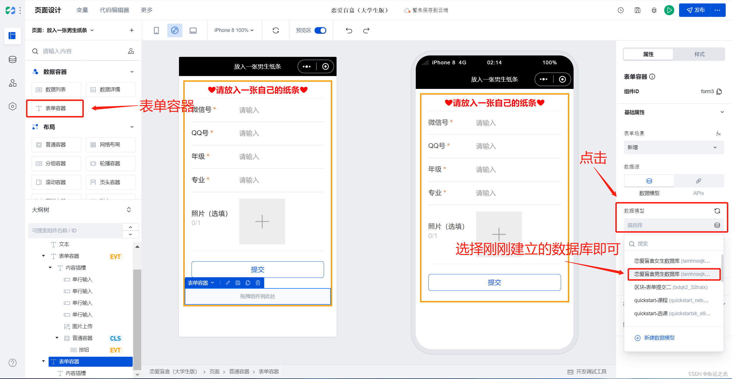这里重要的是表单容器的使用,新手可能有点迷茫