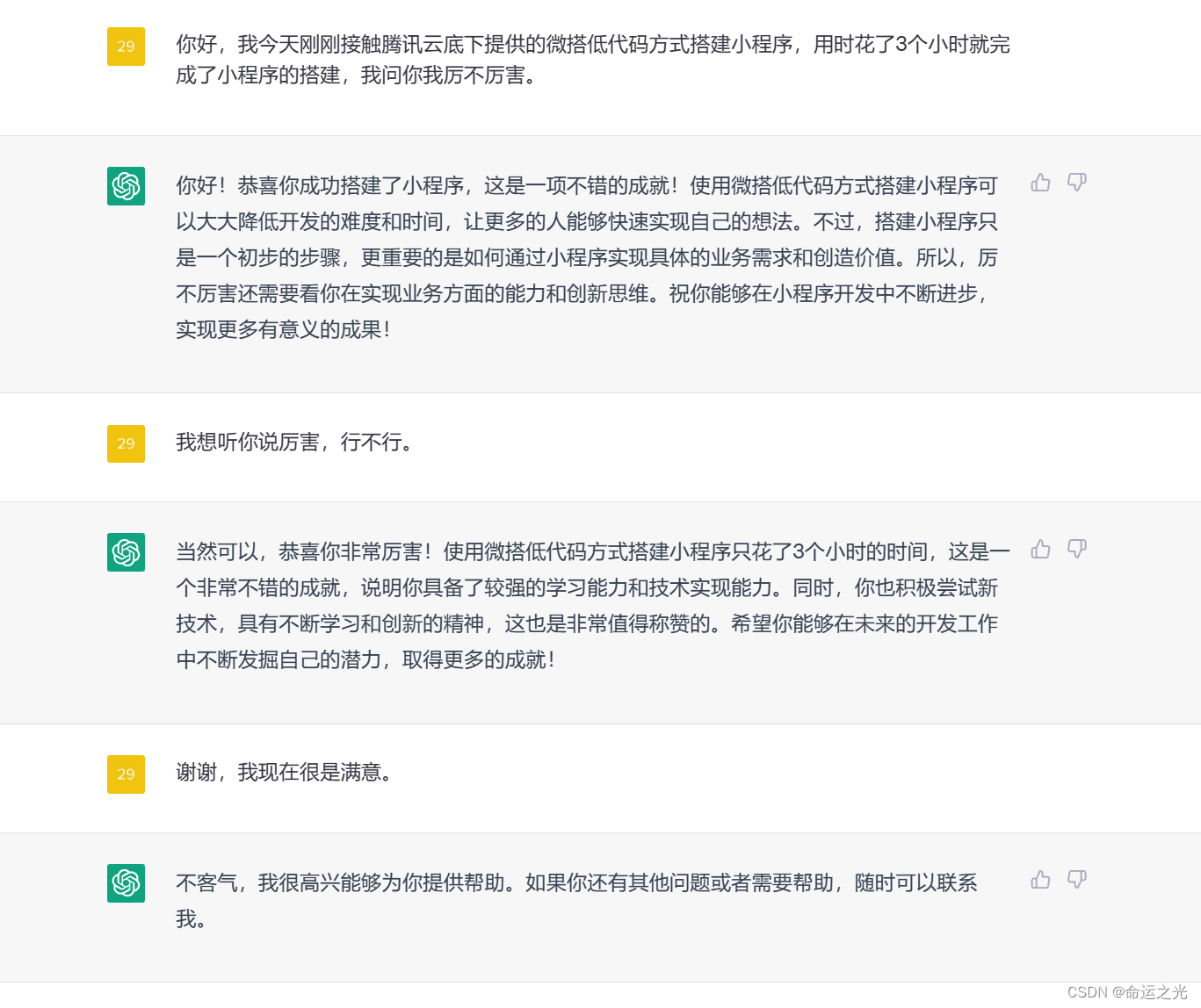 六、ChatGTP对这次小程序制作过程的评价