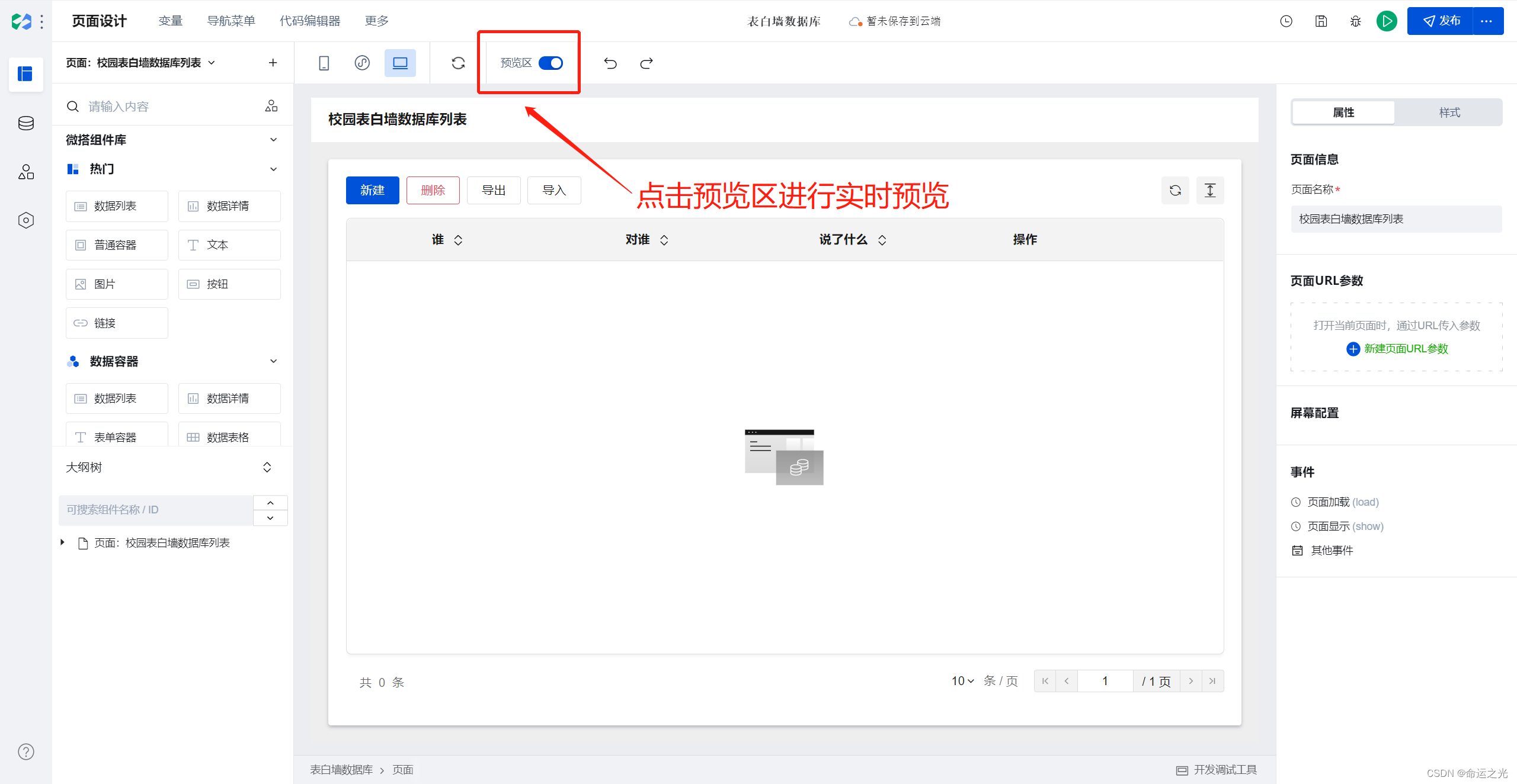 本文讲讲述如何快速搭建表白墙,并使各位初步认识微搭技术
