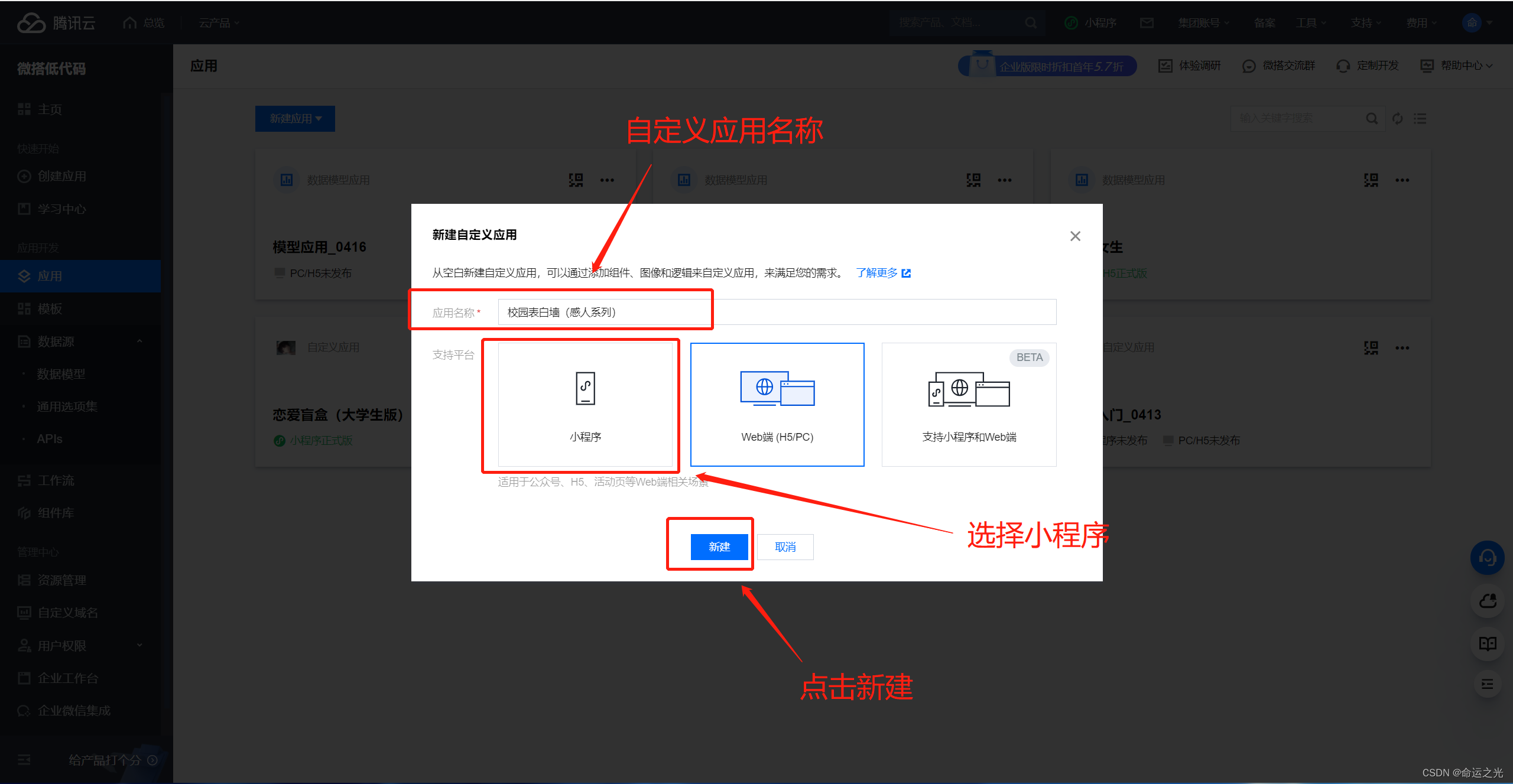 本文将介绍并使用腾讯云底下的微搭低代码技术来实现校园表白墙这一微信小程序的搭建